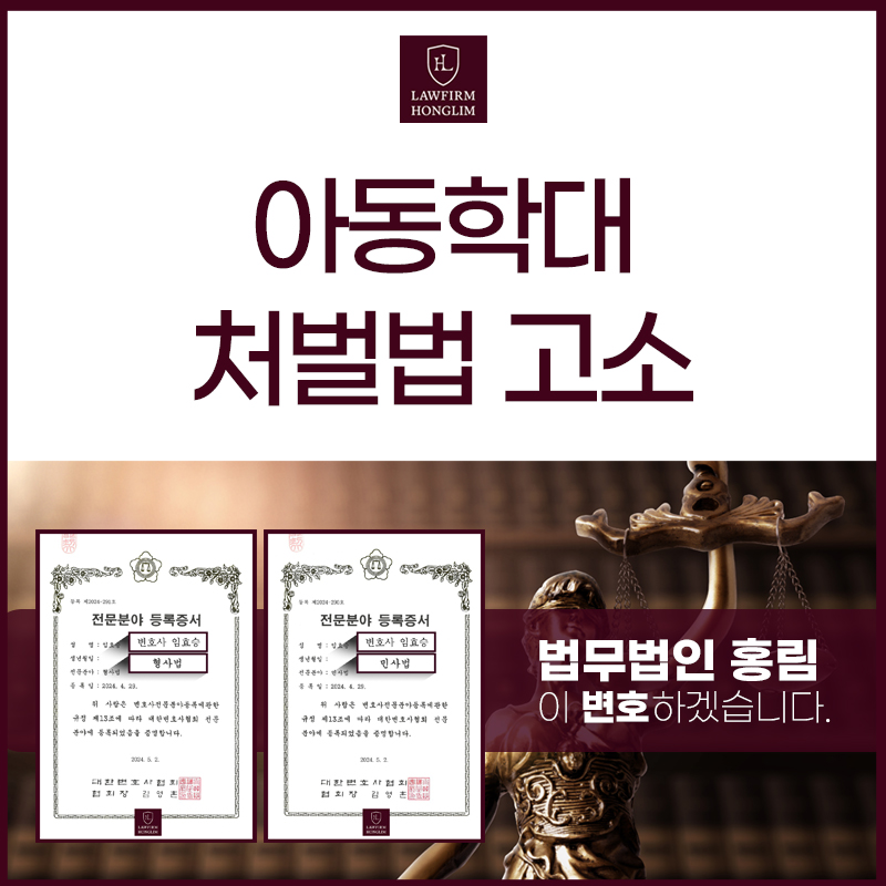 아동학대처벌법 고소로 억울하게 피의자가 되었다면 지금 바로 법무법인 홍림을 찾아주세요.