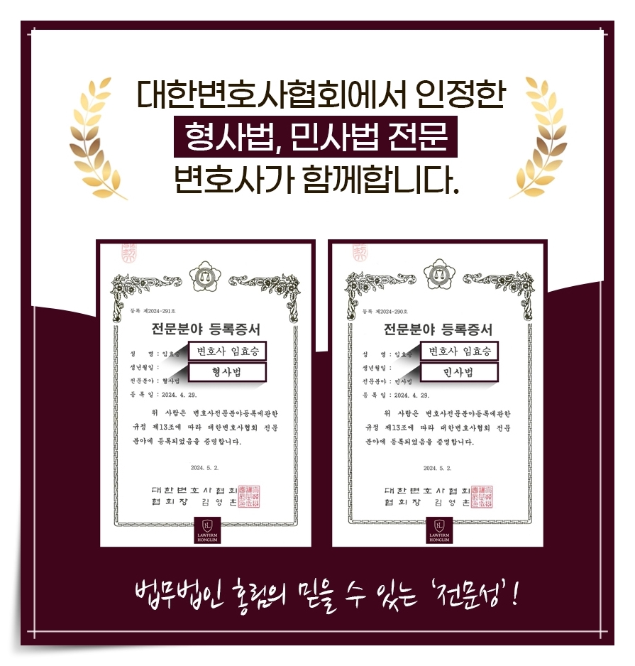 안녕하세요. 법무법인 홍림의 대표 변호사 임효승입니다. 법뭅버인 홍림은 생활 속 법률상담에서 형사, 민사, 가사, 행정소송에 이르기까지 의뢰인이 만족할 수 있도록 성심을 다하고 있습니다.