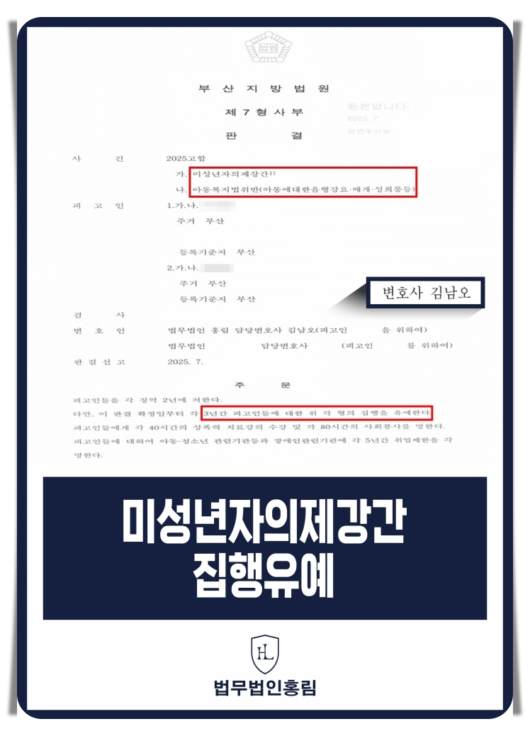 법무법인 홍림은 수많은 아청법 사건에서 초기 진술 단계부터 공판까지 일관된 전략으로 아청법 집행유예 및 무혐의 결과를 이끌어온 경험이 있습니다.