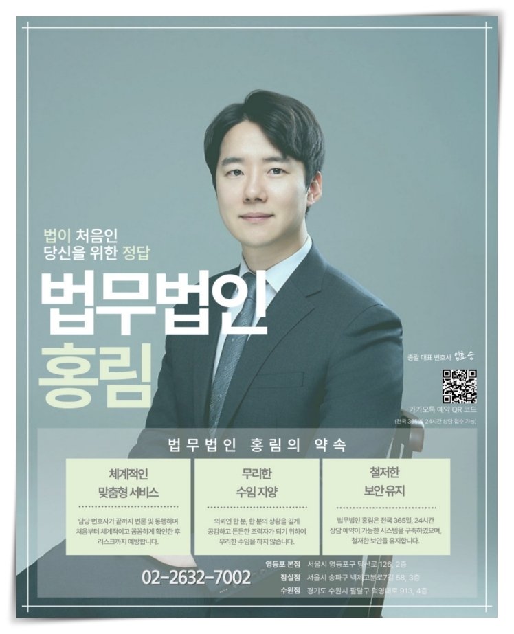 안녕하세요. 법무법인 홍림의 대표 변호사 임효승입니다. 법뭅버인 홍림은 생활 속 법률상담에서 형사, 민사, 가사, 행정소송에 이르기까지 의뢰인이 만족할 수 있도록 성심을 다하고 있습니다.