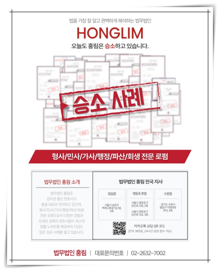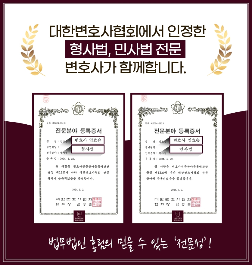 안녕하세요. 법무법인 홍림의 대표 변호사 임효승입니다. 법뭅버인 홍림은 생활 속 법률상담에서 형사, 민사, 가사, 행정소송에 이르기까지 의뢰인이 만족할 수 있도록 성심을 다하고 있습니다.