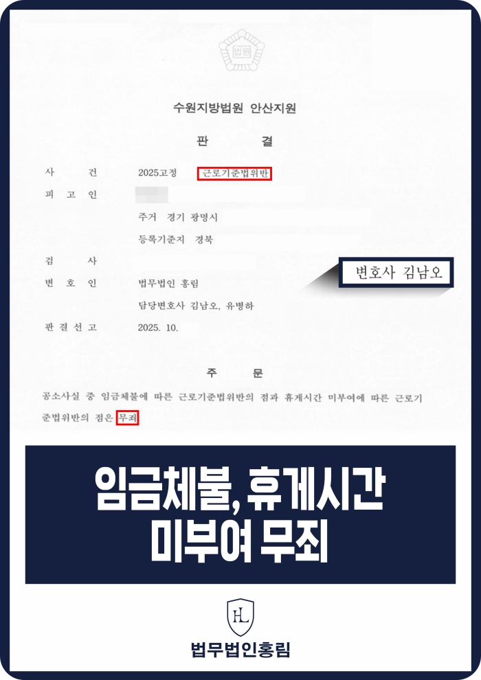 법무법인 홍림은 다수의 근로기준법위반 사건에서 무혐의와 불기소 처분을 이끌어낸 경험을 바탕으로, 수사 초기부터 체계적인 대응 전략을 제공합니다.