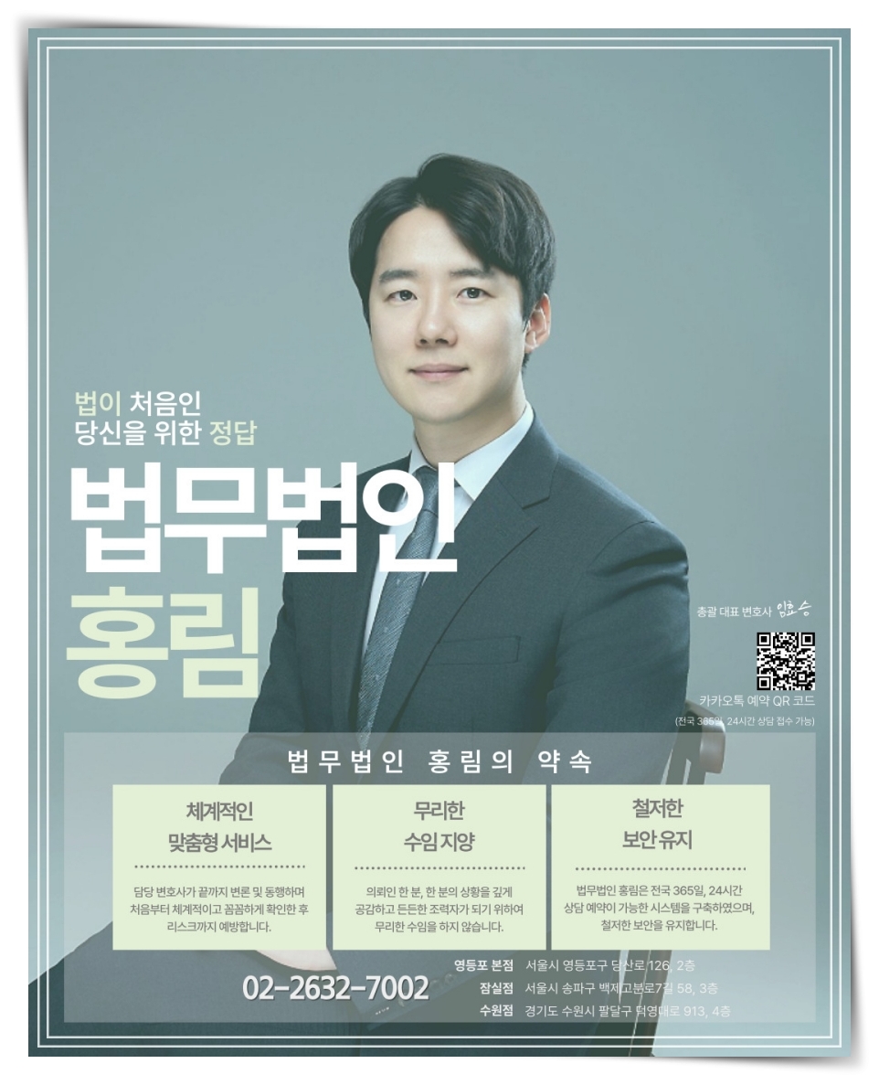 안녕하세요. 법무법인 홍림의 대표 변호사 임효승입니다. 법뭅버인 홍림은 생활 속 법률상담에서 형사, 민사, 가사, 행정소송에 이르기까지 의뢰인이 만족할 수 있도록 성심을 다하고 있습니다.