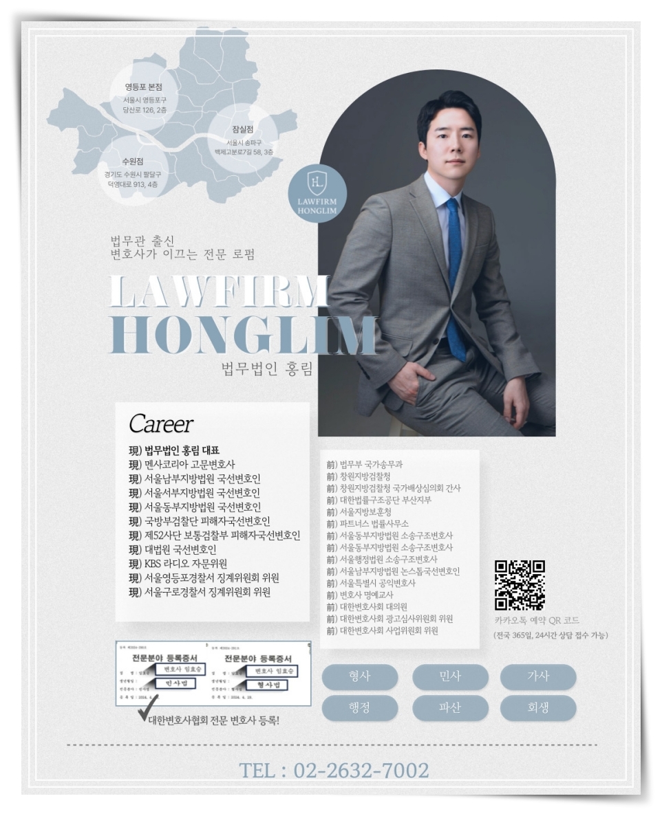 안녕하세요. 법무법인 홍림의 대표 변호사 임효승입니다. 법뭅버인 홍림은 생활 속 법률상담에서 형사, 민사, 가사, 행정소송에 이르기까지 의뢰인이 만족할 수 있도록 성심을 다하고 있습니다.